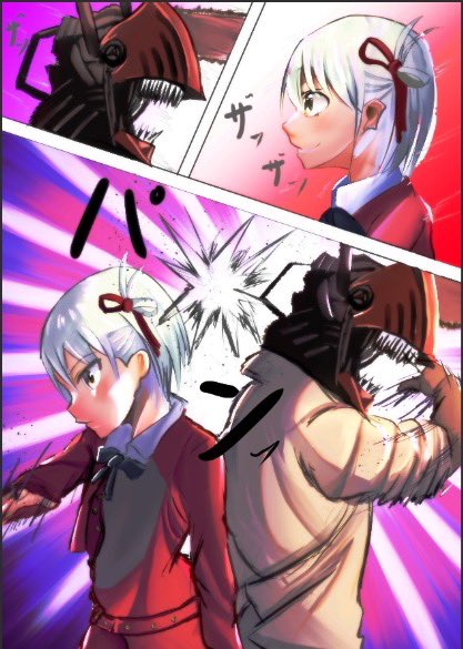 @Lopi_illust_ 参加失礼します こんな感じのイラスト書いてます 一枚目はリコリコからチェーンソーマンへの覇権のバトンタッチを書いてます よろしくお願いします