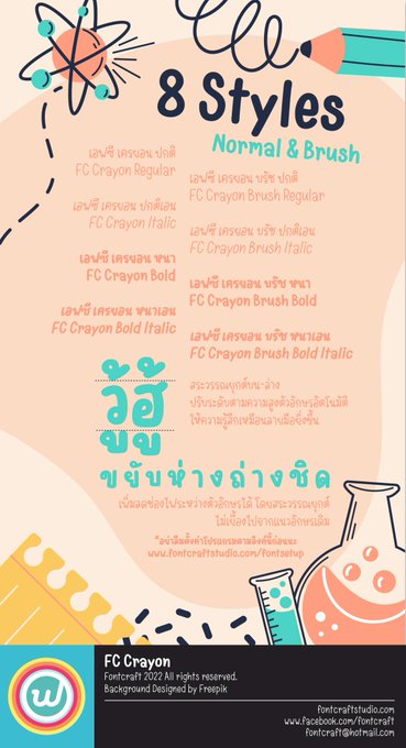 ฟอนต์ลายมือมีหัว ถอดแบบจากลายมือเด็กๆ พร้อมสไตล์บรัชคล้ายกับการเขียนด้วยสีเทียน