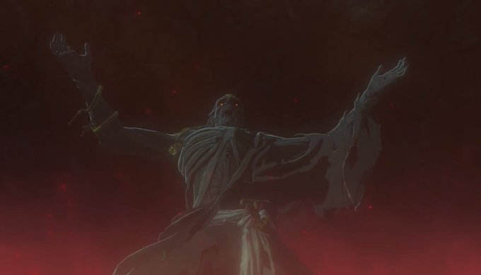 @Unnytaken_Name The main reason people don’t think that’s Ganondorf is because the ears are pointy. Ganondorf’s corpse has rounded ears. Of course since the game is still in development, we don’t know if that was a design error or not, but going with what we’re given, that shouldn’t be Ganondorf