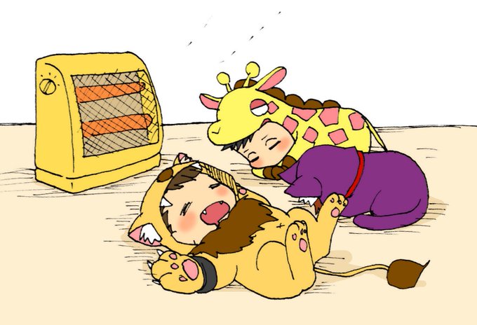 @f19072 結局簡単に色つけた…レオ永は基本ヘソ天で失われた野生だと思う…飼いならされてる…ちなみにカピバラ中佐は庭にある簡易温泉施設に浸かっています
