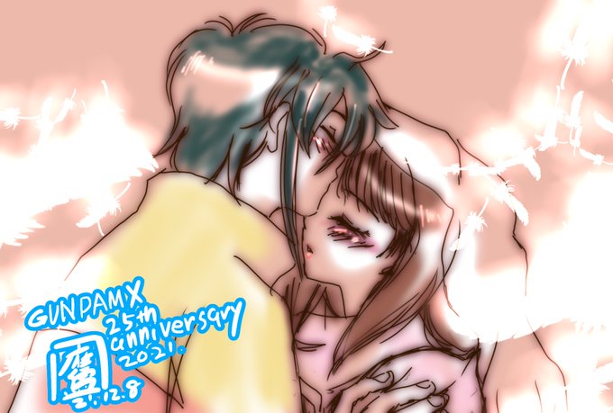 ガロティファ。本編中お着替えなくて、ちょっと寂しかった思い出が。特にティファ。可愛いのに。さて、仕事行こ。#ガロティファ #推しカップルラブラブ月間 #ガンダムX #ガンダムX25周年