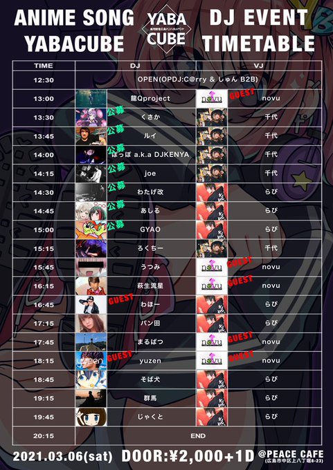 日本各地のオタクDJを招いておりいつもの広島とはまた違ったオタク文化に触れられます