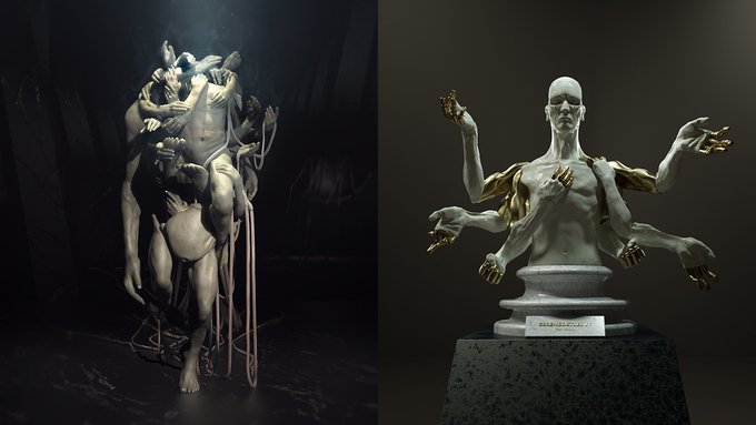 I like to sculpt horrors from a simple 3D sphere, and this is what it looks like after some hours and a little coffee: