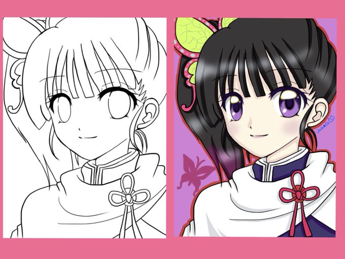 #皆さん線画と塗った後を見せてください 見れば見るほど練習しなきゃな…って思う…(*_*)