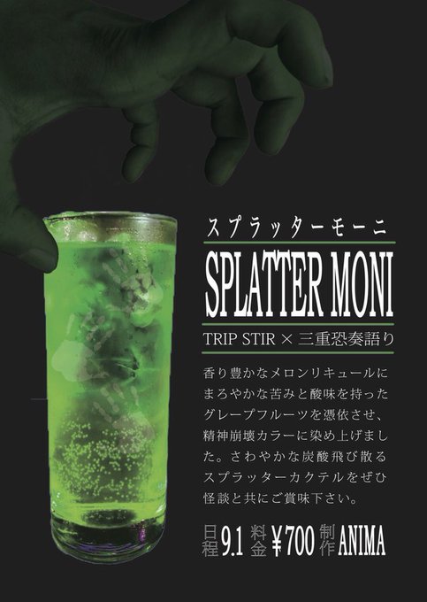ご予約はリプライかDMでお待ちしています 精神崩壊カラーのカクテル スプラッターモーニもどうぞ……