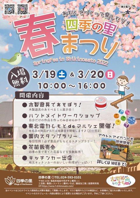 『PLAY PARK FUKUSHIMA』&『四季の里春まつり』3/19(土),3/20(日)同時開催❗️ワークショップ、フードコーナー、アウトドアブランド販売会など盛り沢山ですよ😍