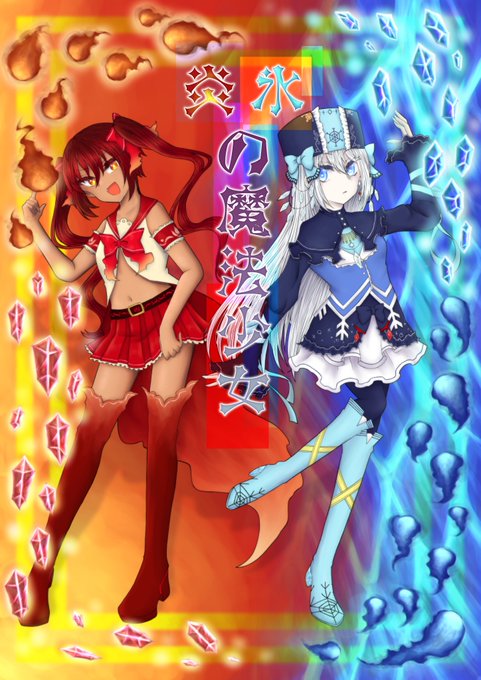 アオルタさんと二人で魔法少女誰デザをしました! お題は天体・炎と氷・白と黒・和風です! リプにアンケート下げるのでどちらがわゅゅのキャラデザか当ててください!不正解者はワュルタエアプと呼びます