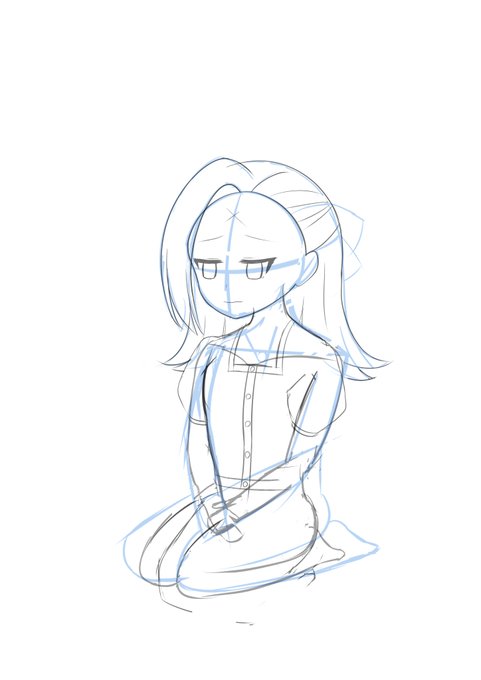 【今日のお絵かき】ラフ~色分け 4h 昨日完成して投稿したカタリナの一部が塗り漏れがあって、正座をして『私は塗り漏れがあったまま投稿しました』のプラカードを首から下げたカタリナを描こうとしてたところ。 正座にさせようと思ったんだけど全くわからなかったので、バストアップになった。