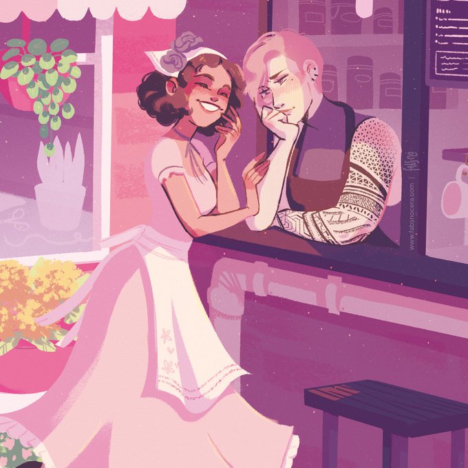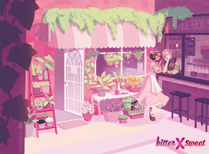 full cover and details for @bittersweetzine ! here's to the coffee shop x flower shop au that we all deserve in all the shade of pinks I could possibly fit in the template I had 🌸💜