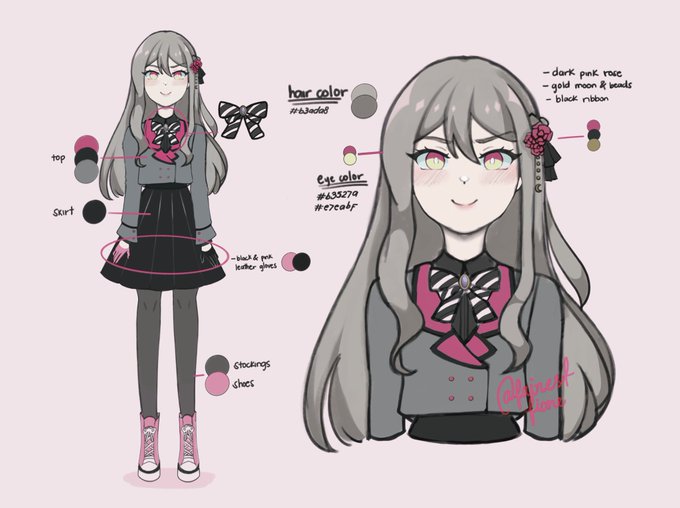 i actually have been working on my enstars oc lore but haven't drawn her yet so i used picrew instead ! her name is evie! she's eden's producer alongside ibara.