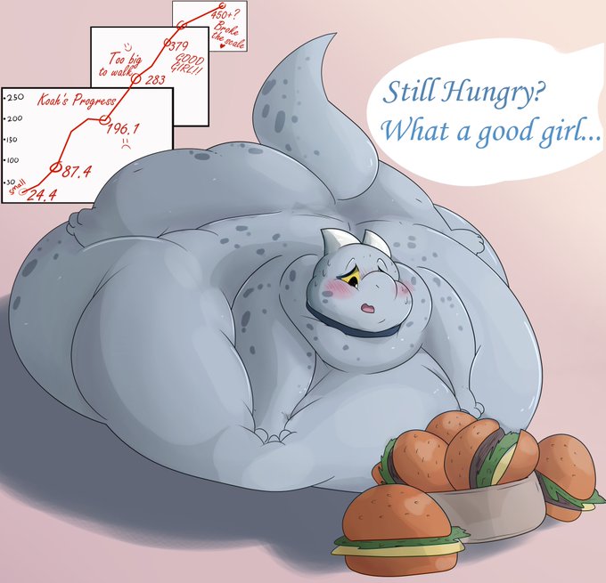 Commission for @DaeaLagarto ! The aftermath of a big stuffing from my demon, now all fattened up for them to lay on that plumped up belly <3