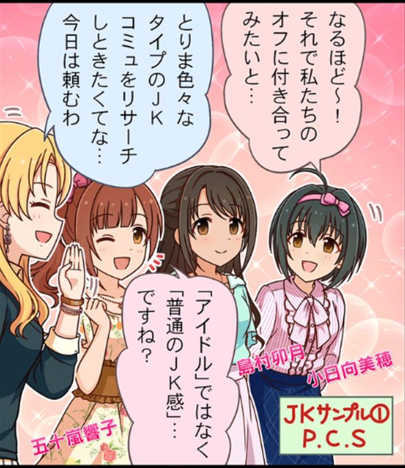 P.S. あいばんさんの担当アイドル 卯月ちゃん、智絵里ちゃんと美穂はモバマスでピンキーキュートというユニットを組んでいます!