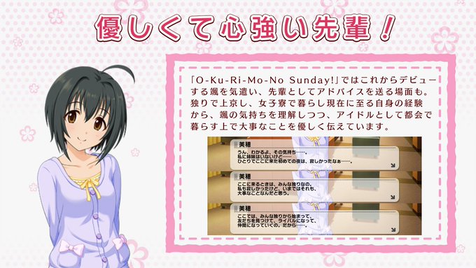@aiban_imas こちらは美穂の最近の活躍です。