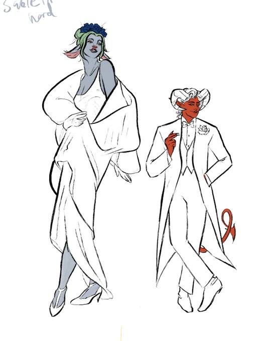 Always last minute, but my tiefling baby Belxibis is getting ready for their date with firbolg Hells Bells for the #ocgala2022 later today!