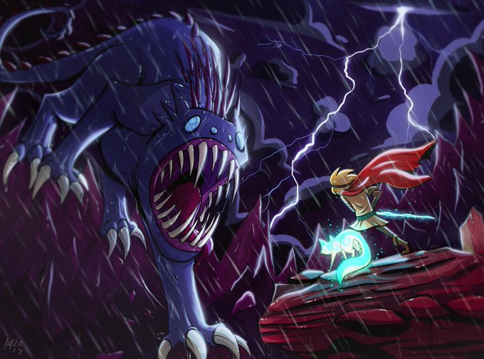 Drew a monster who's about to get wrecked by a tiny child (or maybe vice versa???)