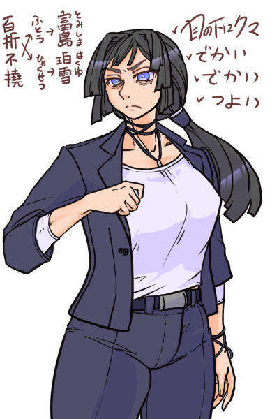 HO3の富島 珀雪さんです。 超肉体派だけどINTとEDU高いので警察手眼からの引用とかバリバリするタイプの酒癖悪いお姉さんです。よく「わかんにゃい……」って顔をする。 #俺の庭師PCを見てくれ