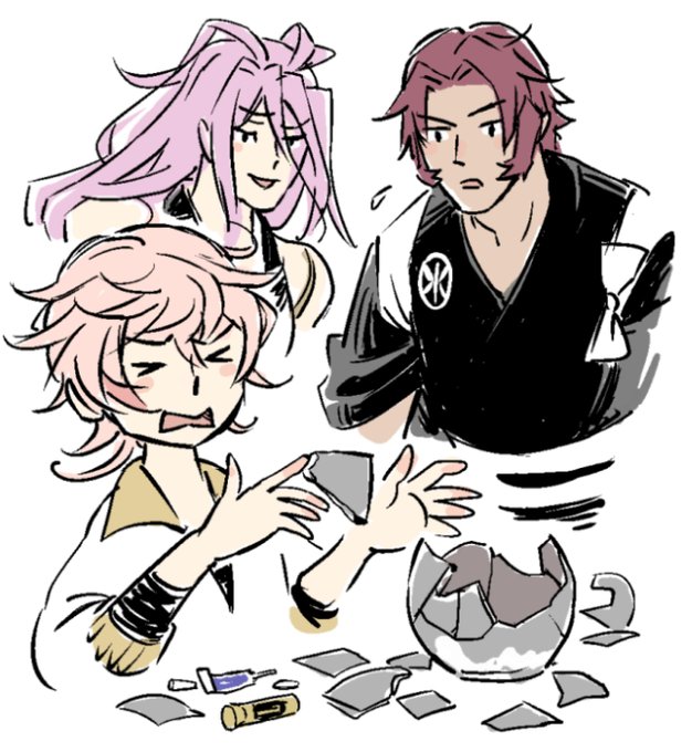 今宵はみほとせ 物吉くんは初年度後期に本丸入りして 同じくその頃実装された日本号と 新人部隊で一緒に戦っていました。 自分の本丸では 刀工や元主の関係以外、 こうして同じ時期に入った刀剣男士は 同期組として割と仲良くなってたりします。 (自分の好みが大いにあり) 以下、変な連続絵です↓