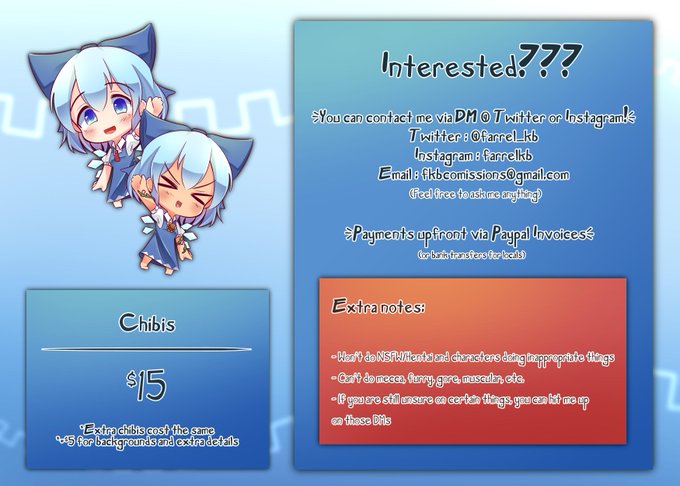 So ummm... I opening commissions again! I have adjusted the prices and I'll let you know if have slots available! Feel free to DM me through IG or Twitter for inquiries or questions!