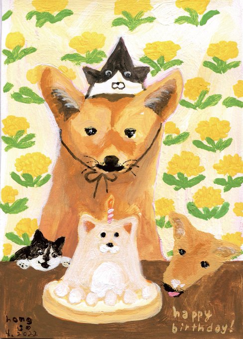 시카 생일을 축하하며 그렸던 그림을 이제야 스캔했다. 우리 동생 누렁이 태리도 매년 생일 파티 함께할 가족이 생겼으니 더 기쁘네!