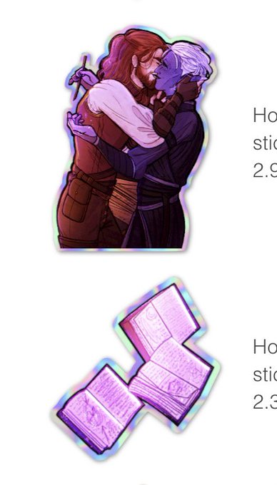Here’s the stickers that I ordered so far! Essek comes in both vinyl and holographic! So excited for them to get here and to show you guys! The shadowgast smooch and books will be sold as a set :) #criticalrolefanart #shadowgast