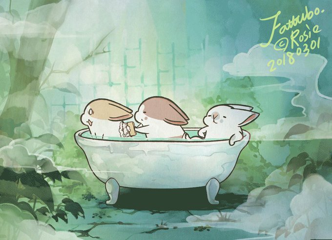 Bathing time #うさぎ #rabbit #bunny #fattubo #bath