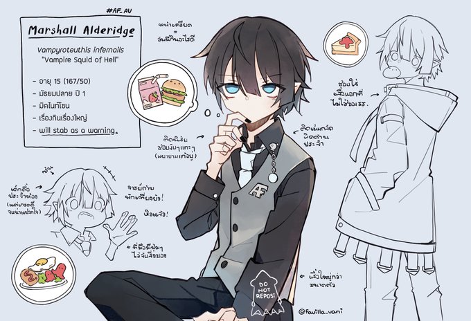 น้องเป็นหมึกแวมไพร์ ถึงจะขึ้นชื่อว่าแวมไพร์แต่จริงๆ ก็ไม่ไปไล่ดูดเลือดใครหรอก ชอบกินแพลงตอนกับกุ้งเล็กๆ มากกว่า แต่ก็มีประวัติเคยไปงับ(?)หัว(??)เพื่อน(???)