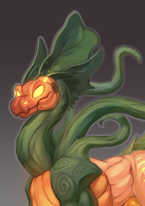 We thought about what we could do for Halloween and decided to create this dragon together. I drew a sketch with a rough idea and @KarukujiArt turned it into this wonderful art 🤍