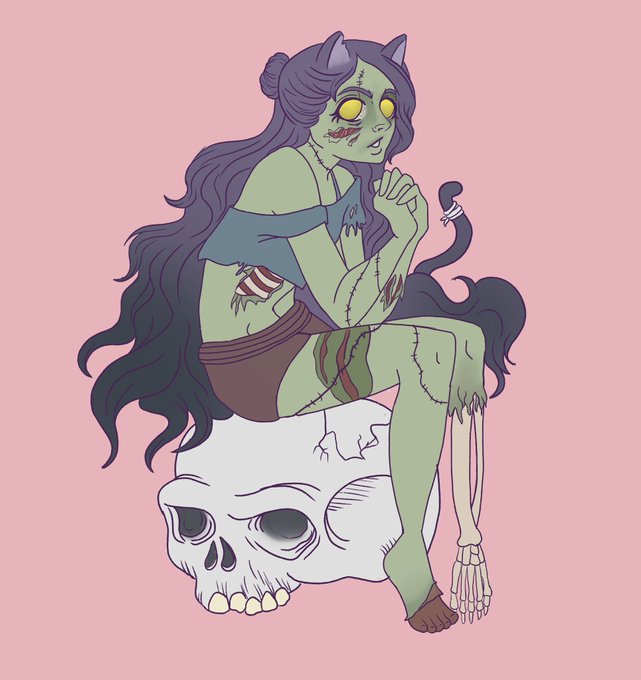 Day 30/31 of #drawtober with Bait presenting #rum and coloring my spooky cat girl from last year