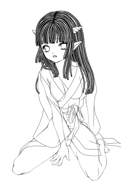 設定したけれど、小さい絵のためかなりガタガタが気になる(1枚目) 今回(2枚目)普通にGペンソフトで描いた方が良さそう。 3枚目のリーヤちゃんの髪の毛の設定と同じなんだけど、やはり絵の大きさで変わるなぁ。