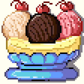 I am especially proud of the food icons I made, so please enjoy it in all its enlargened glory. behold, the matcha taiyaki, the raspberry & sea-salt soft serve, and the triple flavoured banana split sundae.