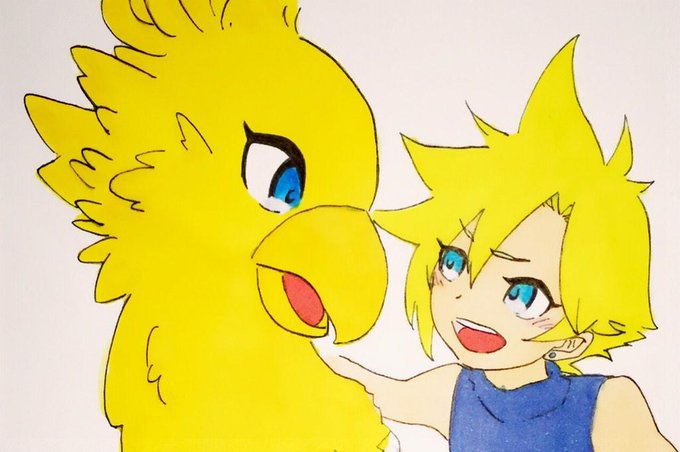 #FF版深夜のお絵描き60分一本勝負 遅刻失礼します 乗り物と聞いて1番にうかんだのがチョコボ乗り回すクラウドでしたww 雑すぎて辛い