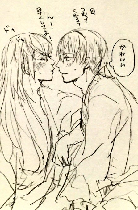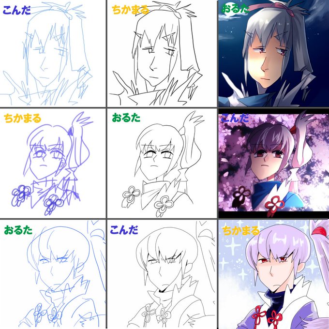流行りの目を瞑って描いたラフを交換&リレーを、ちかまるさん(@prnU35)おるたさん(@orururu777)と一緒にTAKUMI様でやりました♡