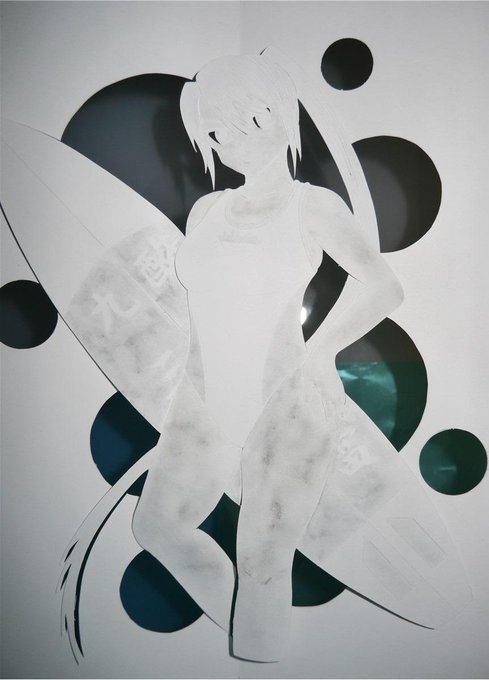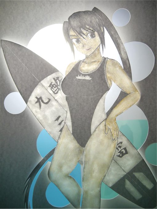 昨日カッティングコミュで開催された水着パーティーでの提出作品。競泳水着の那智に魚雷サーフボードを持たせてみたものでございます。