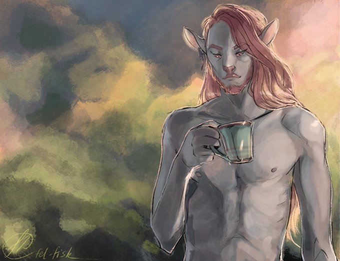 [in today's sesh, my goliath luka was bathing in a stream w/ @christinadodaro 's halfling teddy & teddy sorta just... dropped his tragic backstory mid-bath?? needless to say luka was caught off guard]