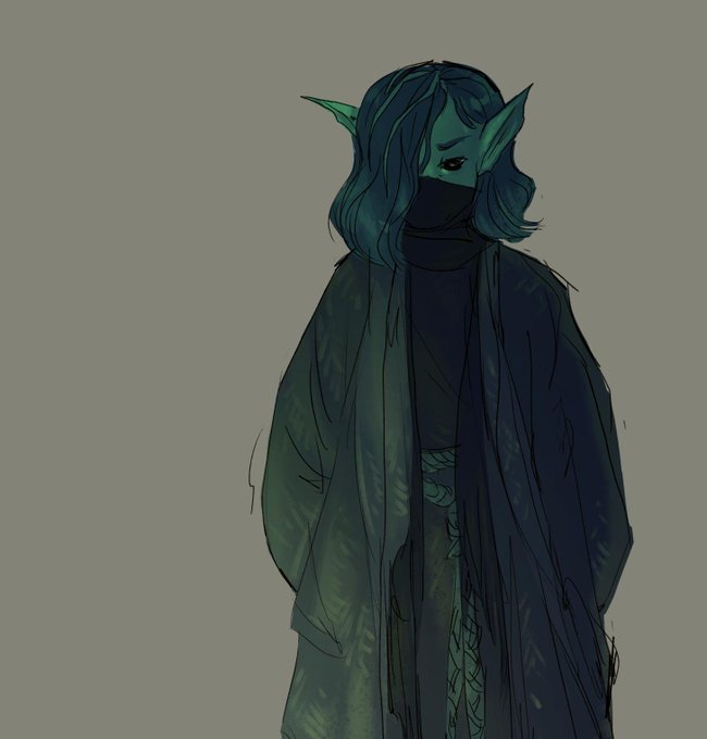 wanted to paint somethin before going to bed, so dark crystal-esque spooky caduceus as per last weeks ep was a Must>:0c [tho obviously ill have to draw him as a straight up gelfling some time too]