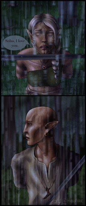 @haverdoodles The Lavellan Siblings, Liri and Sorlhen, are both bi! They once had a crush on the same mercenary during their time in Denerim until they realized she was trying to befriend them so she could rob them. 🙃