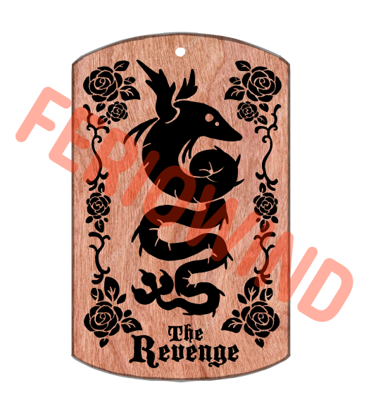 mock-up of a wooden charm design based on the serpent creature on the revenge.... deciding between just the R or The Revenge hmmmm