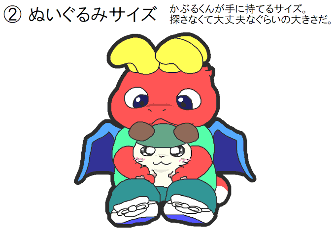 ベイ助とかぶるくんを一緒にかくとき、 大きさ自由だから色々なパターンあるなと思って比べてみたよ よくかくときは②な気がするけど③にもなるかな