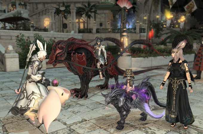 ゲコ様とサクラ並木を見てきました🌸和服のゲコ様がカッコよくてファンがまた増えてしまいますね!🐰 #FF14 #ラムウF2F並木 #今日のゲコ様