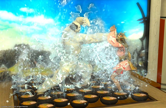 「喰らえウドン拳!!ヤァァァ!!」「なんのコレしきぃぃ!」「ハハハハ効かぬぞぉぉぉ!!」 って撮りながら深夜に爆笑してましたw #FF14