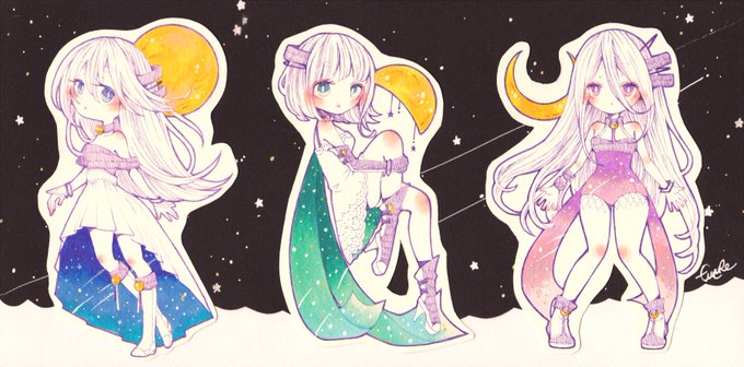 先日の展示会のイラストがドンピシャでテーマでした!順番に月と星空です。コピックで描いています〜素敵なイラストが多くてタグ巡り楽しいです✨