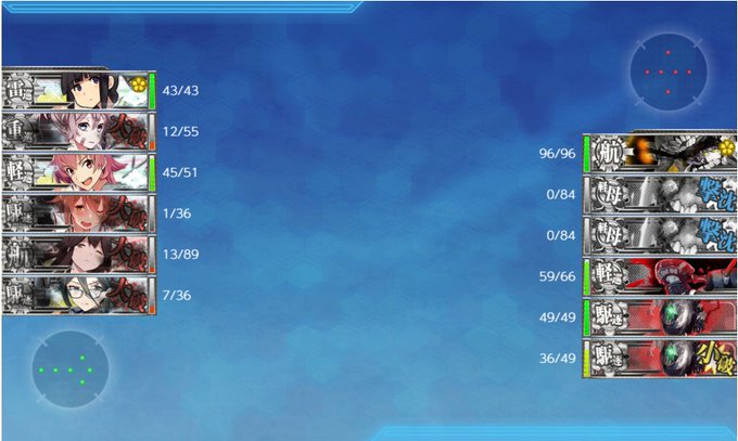 とりあえず戦闘の流れはこんな感じで(前半) ろくに育ってないアイオワが強かったのと、五航戦の一発が出ると強力だったね