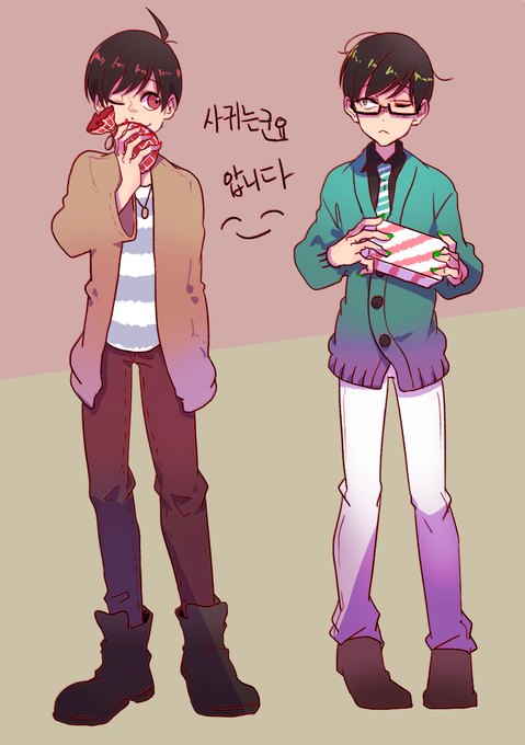 오소쵸로 둘다 가디건인거 넘 귀여워서 집에 오자마자 낙서 애들 새 사복 넘 좋다ㅠㅠ..