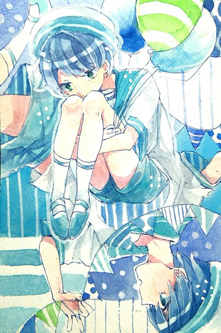 #セーラー服版深夜の真剣お絵描き60分一本勝負 すみきったあおのなかで