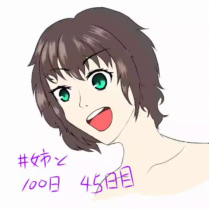 45日目 今日は昨日のマリーちゃんを参考にしつつ、癖っ毛のひとを描いてみた 線画のメリハリをもっと付けて、各パーツのバランスを考えた方がいいかなぁと思いましたまる #姉と100日