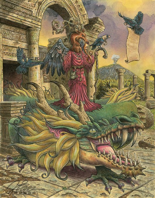 Work in progress close up sneak peek for “Council in The House Of Tomorrow” should be finally done with it tomorrow. I still have a little tweaking on the dragon head along with some other things to get done on the piece. Then get a scan of it made for p… https://t.co/NdVNxv02HE