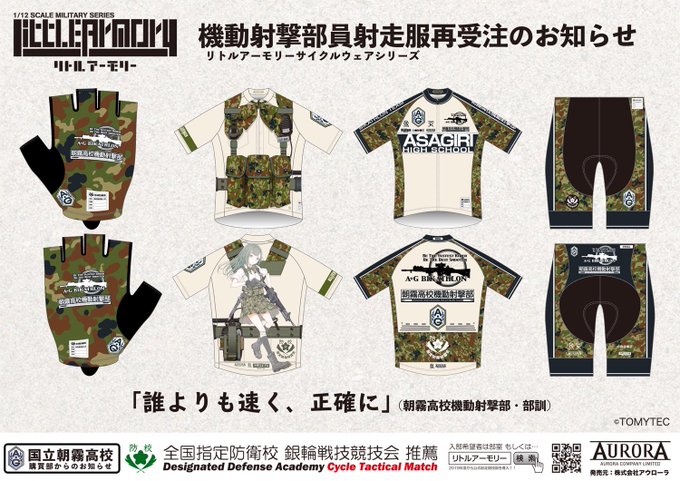 「 #リトルアーモリー サイクルウェアシリーズ」(機動射撃部射走服)再受注(7/末納品予定分)は最長取扱店で6/4木曜AM10迄、近日中に順次終了となります。この機会をお見逃しなく!アイテム及び受注詳細は下記リンクまで→