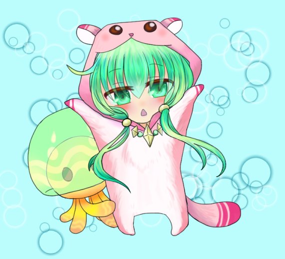 #ECO絵 クラゲちゃんの仮装!下の子も帽子付くつもりだったが、行動の邪魔になりそうであきらめました。 キャンディより甘い飲み物が欲しい子たちで、よろしく!