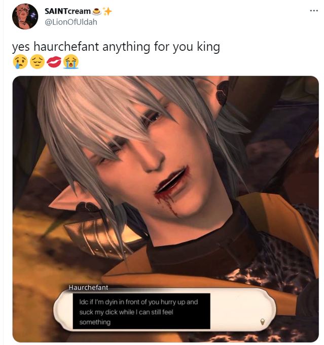 @tinyhoneywillow the principle of the sfw sasuke meme except we use sasara but it’s usually for like “oh no a normal picture of aymeric that has us feeling compromised” purposes and it happened often enough that there’s a channel in our server dedicated solely to storing sasara for easy access 🥲