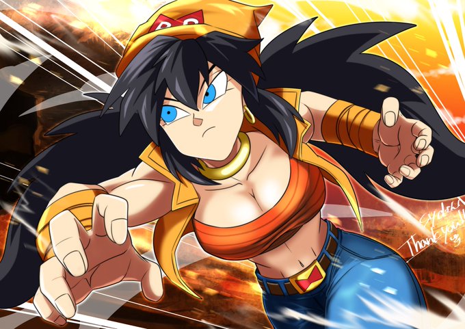 I commissioned @/yuri619223 on skeb for a FighterZ style screenshot of my OC Android 22 and @SwagkashiArt's Aspara